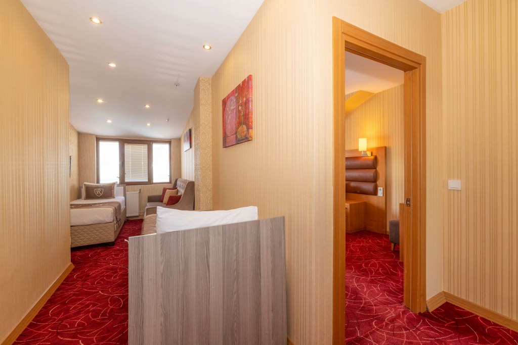 Beds: 1 double bed. This Suite room has a sofa, minibar and electric kettle..
